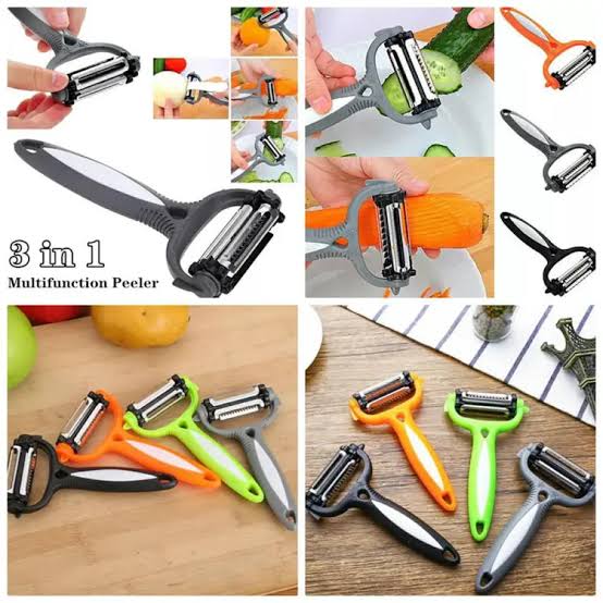 - This is a multifunctional peeler with 360 degree rotatable blades. It has 3 kinds of blades which can grate food into different kinds of shape. The sharp and convex sides of it can be used to peel fruit like orange. It is a perfect cooking tool for housewife